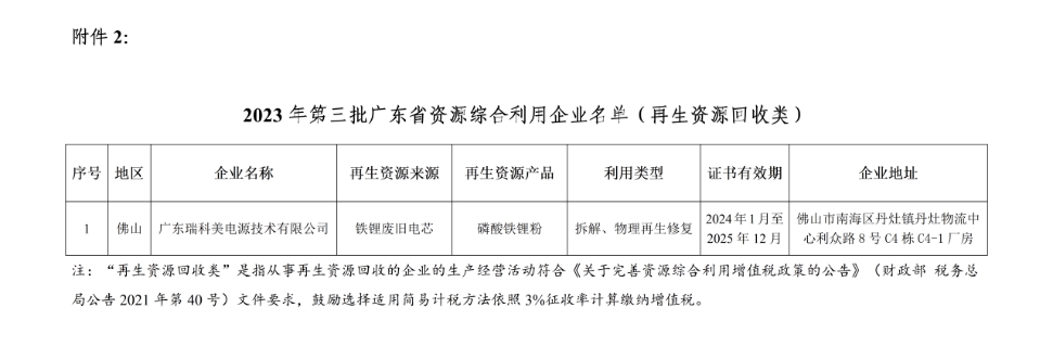 关于公布2023年第三批广东省资源综合利用企业名单的通知