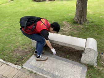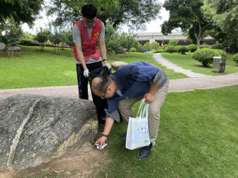 活动过程中,志愿者们分成4组,身着志愿者马甲,手戴手套、等工具,不怕夏日酷暑、互相配合,沿着白云湖步道、水岸边捡起散落在地上、水岸边的包装袋、包装膜等塑料垃圾。