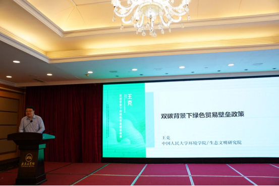 中国人民大学生态文明研究院副院长王克,就《双碳背景下绿色贸易壁垒政策》讲解了双碳背景下国内外绿色贸易壁垒的现状,并针对企业面临的挑战和机遇进行了分析。