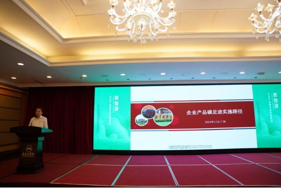 广州赛宝认证中心服务有限公司绿色低碳事业部副主任郭智源向参会人员详细介绍了《企业产品碳足迹实施路径》,并举例说明了企业产品碳足迹认证过程。