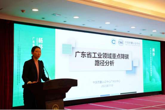 中国质量认证中心广州分中心绿色发展事业部杨抒副总经理,给我们讲解了《广东省工业领域重点降碳路径》,特别在工业园区降碳的路径上讲述了自己的想法。
