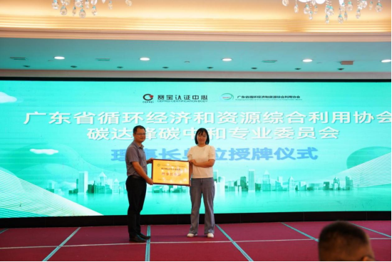 会议最后举行了广东省循环经济和资源综合利用协会碳达峰碳中和专业委员会成立仪式,由我协会冼尚德副会长兼秘书长为专委会和理事长单位授牌。且由我协会刘建华党支部书记兼副会长为专委会副理事长单位授牌。