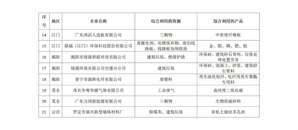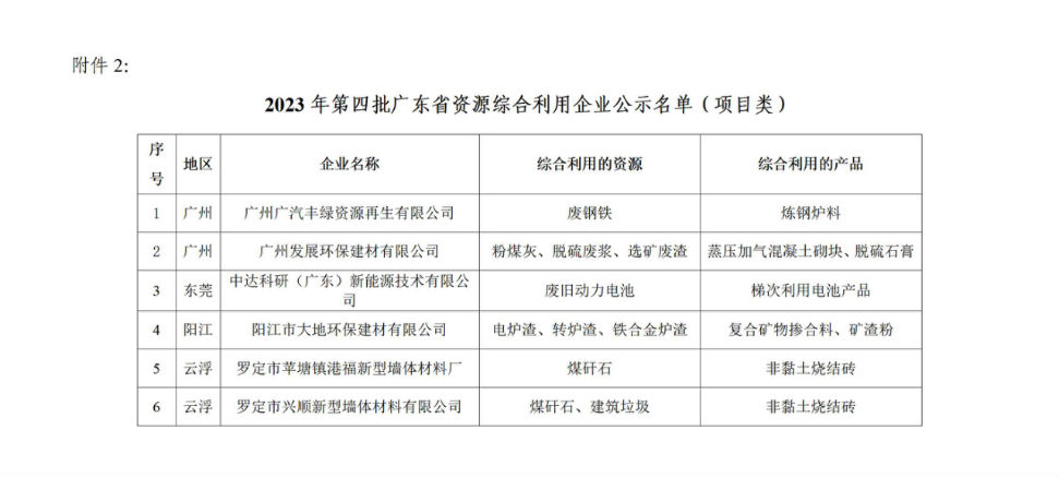 2、2023年第四批广东省资源综合利用企业公示名单(项目类)