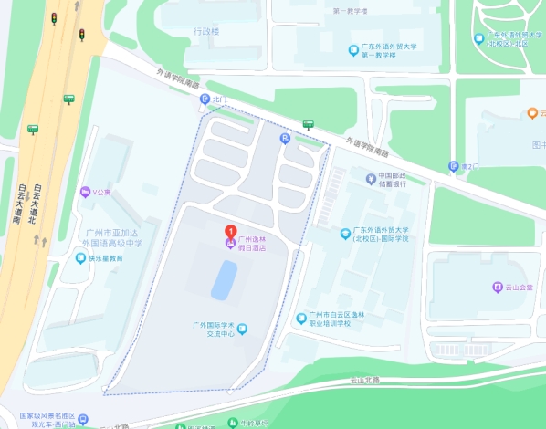 (三)交通指引。会场停车位宽裕,参会免费停车8小时;公共交通可乘坐公交到广外(白云山西门)站,步行约400米,或乘坐地铁二号线到萧岗站A出口,步行约1500米。