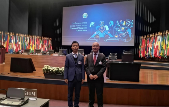 为支持国家和广东省履约工作的开展,搭建我省监控化学品管理国际交流合作平台,2023年11月27日至12月1日,我协会监控化学品专业委员会(SCCC)秘书处何力行、专家吴忠辉一行二人作为中方非政府组织(NGO)代表,赴荷兰海牙参加禁止化学武器组织第28届缔约国大会(CSP-28)。
