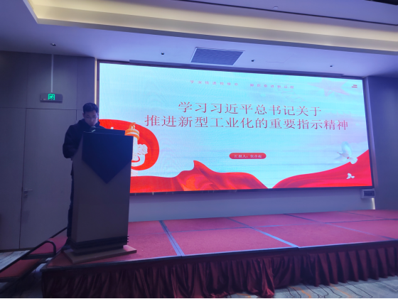 本期党课首先由党员张彦起同志作“学习关于推进新型工业化的重要指示精神”主题党课分享。“推进新型工业化是党中央统筹中华民族伟大复兴战略全局和世界百年未有之大变局作出的重大战略部署,新时代新征程上,新型工业化具有新的内涵和特征,其中之一是坚持人与自然和谐共生、促进绿色低碳发展的工业化。”张彦起同志主要围绕新型工业化和促进绿色低碳发展之间的关系,分享了他的理解和思考。