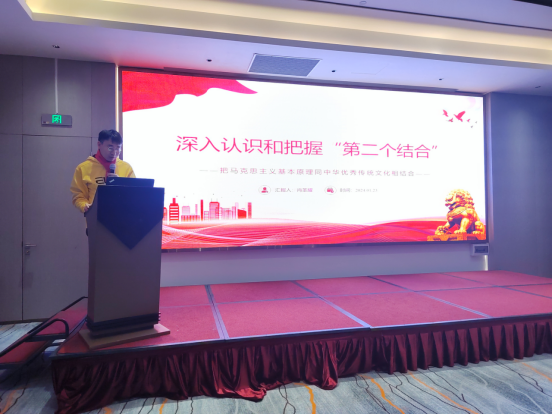 接着肖圣耀同志讲解了“深入认识和把握‘第二个结合’——把马克思主义基本原理同中华优秀传统文化相结合”的主题党课。分享了如何汲取中华优秀传统文化中蕴含的生态智慧等内容,助力将党的二十大关于生态文明建设和生态环境保护的决策部署落实到位,不断推动绿色发展,促进人与自然和谐共生。