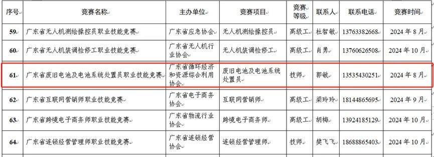 废旧电池及电池系统处置员入选广东省2024年行业企业职业技能竞赛项目