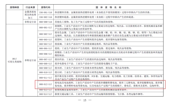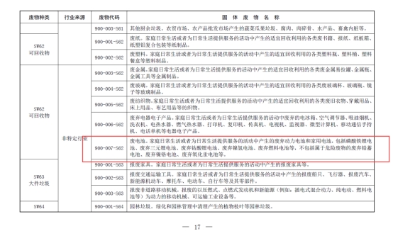 在最新修订的《固体废物分类与代码目录》中,国家生态环境部将废旧锂电池正式列入固体废物管理范畴,标志着对这一日益增长的废弃物种类采取了更为严格的管理措施。此举旨在促进废旧锂电池的有效回收利用,减少环境污染,并推动资源的可持续利用。