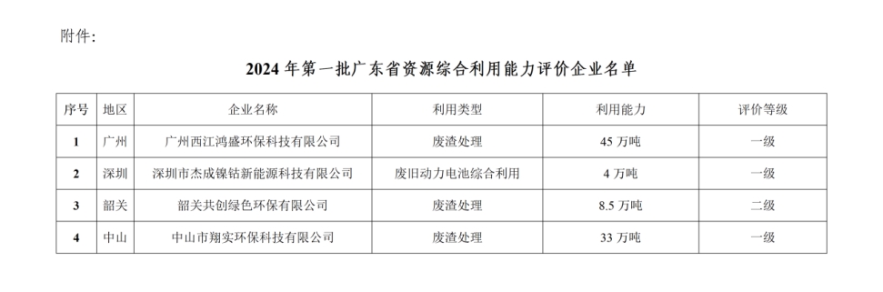 关于公布2024年第一批广东省资源综合利用能力评价企业名单的通知