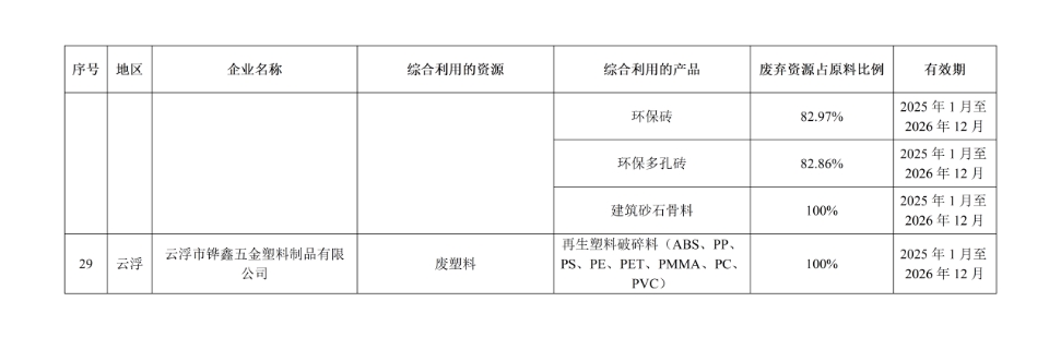 2024年第四批广东省资源综合利用企业公示