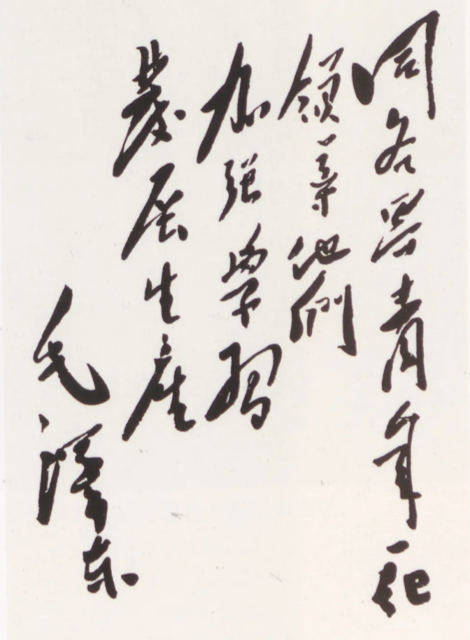 毛泽东同志给中国新民主主义青年团第一次全国代表大会的题词。
