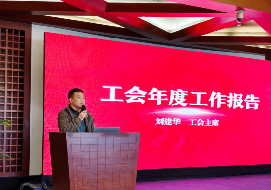 工会主席刘建华在总结会议上作工会年度工作报告