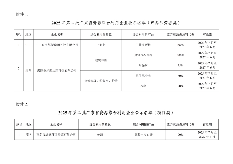 附件:1、2025年第二批广东省资源综合利用企业公示名单(产品和劳务类)