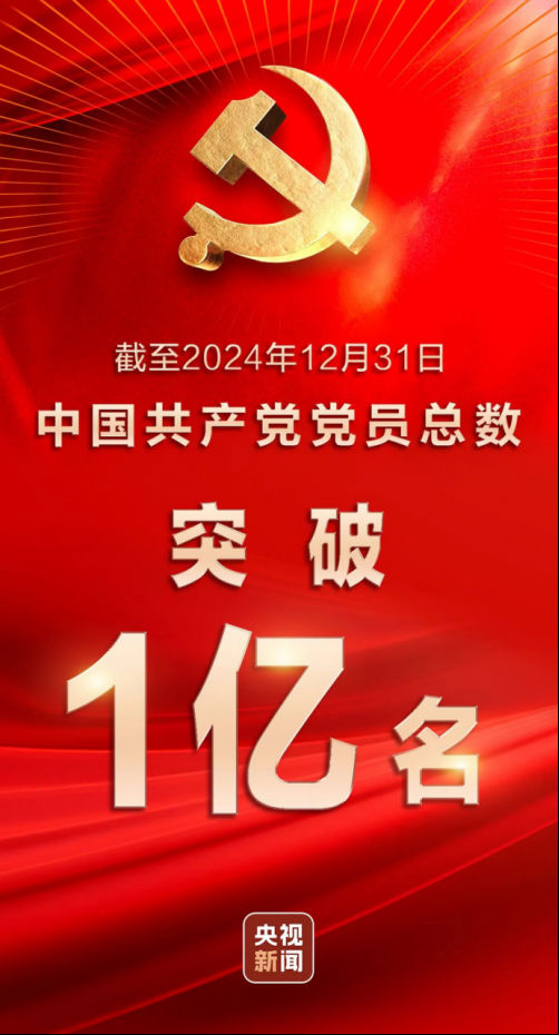 中共中央组织部最新党内统计数据显示,截至2024年12月31日,中国共产党党员总数为10027.1万名,比2023年底净增108.6万名,增幅为1.1%。