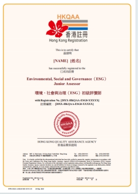 (2)香港品质保证局(HKQAA)环境、社会与治理(ESG)评价师(初级)证书:本课程包含 CCAA 企业环境、社会与治理(ESG)评价师培训费 + 香港品保局 ESG 评价师培训费,并已包含申请香港品质保证局(HKQAA)“环境、社会与治理(ESG)评价师”初级证书所需的必修线上课程《国际ESG标准发展及企业应对》。完成此课程学习是申请相应等级证书的必要条件。