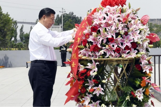 2017年6月21日,习近平总书记来到兴县,参观晋绥边区革命纪念馆,向革命烈士敬献花篮。新华社记者 李学仁 摄