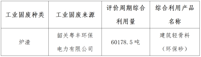 韶关共创绿色环保有限公司工业固体废物资源综合利用评价情况公示